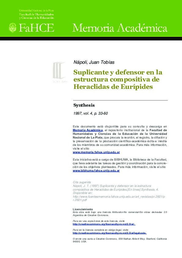 Nápoli, J. (1997). Suplicante y defensor en la estructura compositiva de Heraclidas de Eurípides. Synthesis, nro. 4, pp. 33-61.